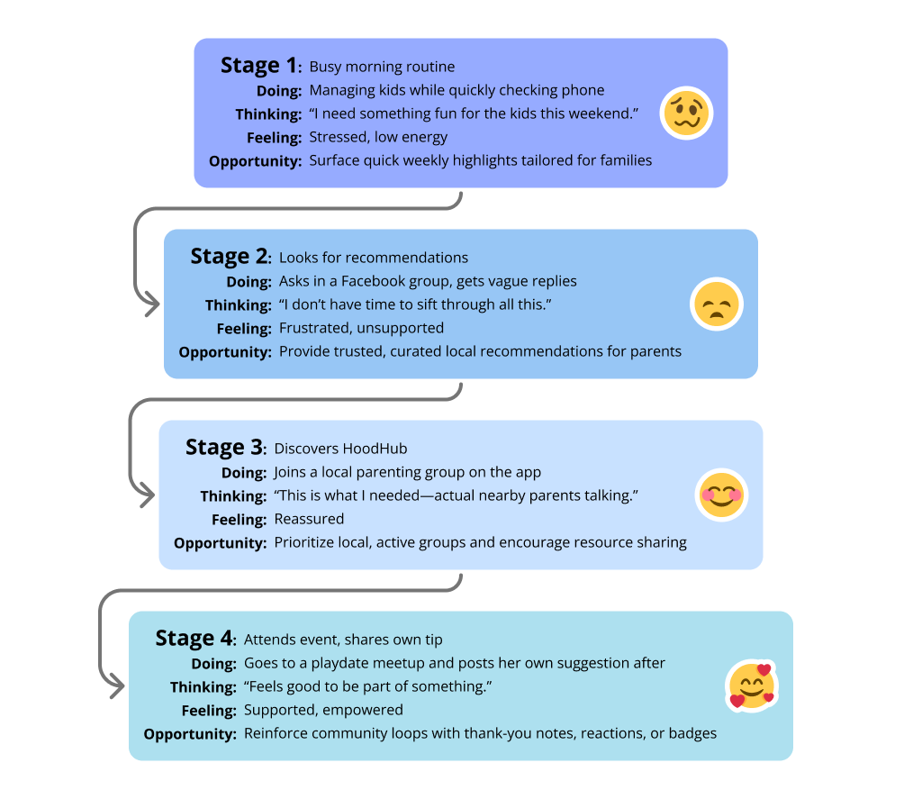 Overview: HoodHub empowers residents to report local problems (e.g., potholes, noise complaints), access services, and participate in civic engagement — all from one easy-to-use hub. I led the design process from research through validation, with a strong focus on community voice, inclusion, and accessibility.
